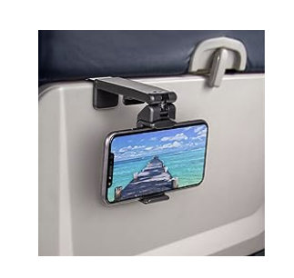 Some airplanes don’t have the right size or angle of phone mount on the back of the seat in front of you… and some don’t have one at all! This device solves it for you so you don’t have to hold your phone awkwardly for hours to watch a show.