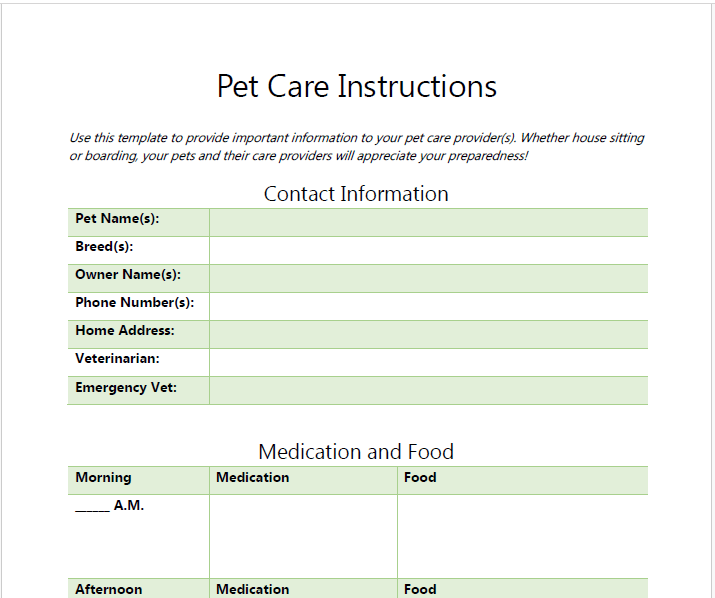 I always have to find a reliable house and dog sitter when I travel with my husband, so I started making a list of care instructions whenever we would go out of town. My pet care providers have told me how helpful this is, so I decided to turn it into a template for others to use, too.