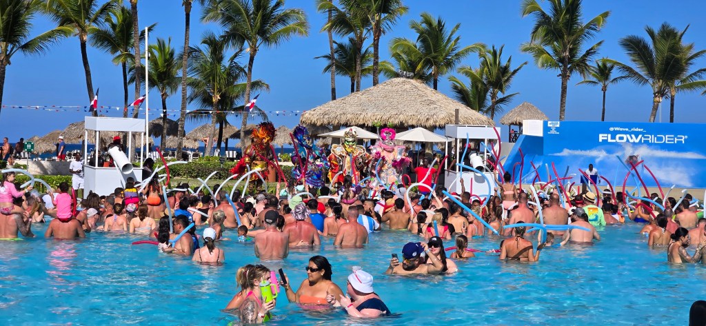 By the time the bridal party joined us, there was an inflatable obstacle course set up at the pool and both kids and adults tried to complete it. There was a DJ playing music and everyone was having a great time! After spending the day in the sun, we decided to take a nap and then head to dinner. This time, we tried the Market (buffet) and, while the food was good, we were disappointed that there was no Dominican food available. The only cuisine options were Mexican, American, Asian or Italian.