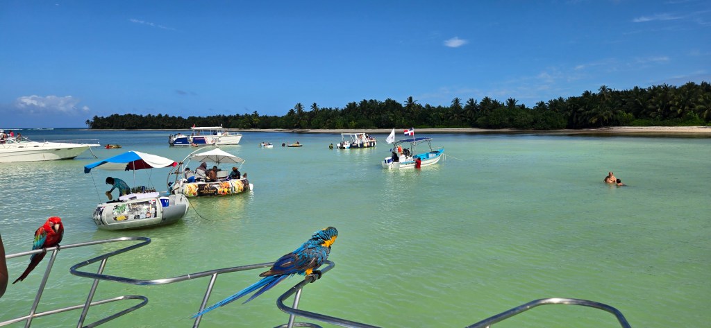We decided to go down to the beach again, in hopes of finding one of the massage therapists from the spa to get a beach massage. We didn’t find them but we did get approached by a guy with a couple of parrots and decided to take some pictures. I’m actually terrified of birds, but I’d already had one rum drink and figured this was as good a time as any to check it off my bucket list. (Barceló con jugo de piña was our drink of choice for this trip – sooooo good!)